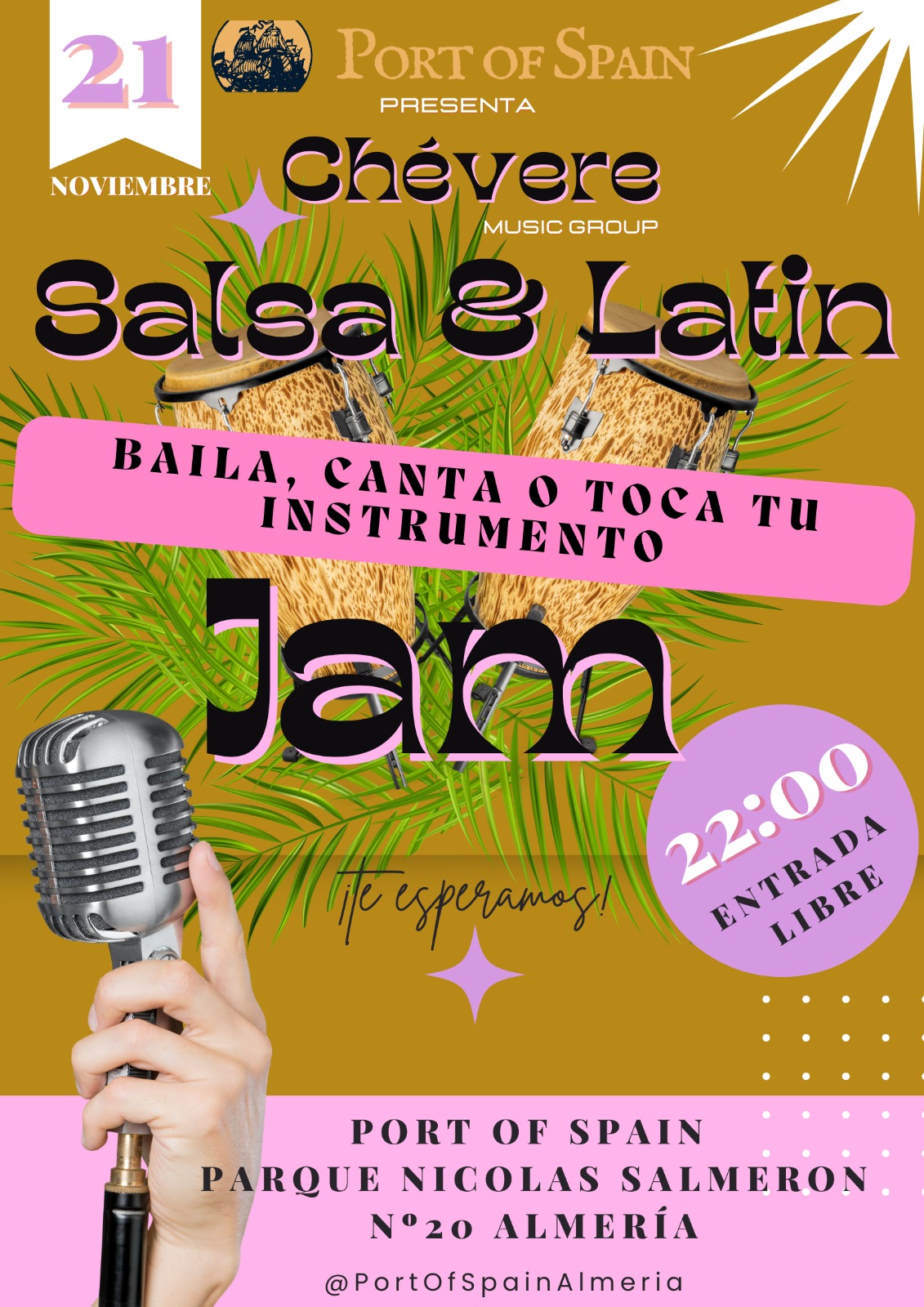 Si eres cantante o de los que cantan en la ducha, si eres músico profesional o de los que dan la nota, si sabes bailar o simplemente te apetece menear el esqueleto ven a compartir con buena energía junto a los integrantes de Chévere Music Group.