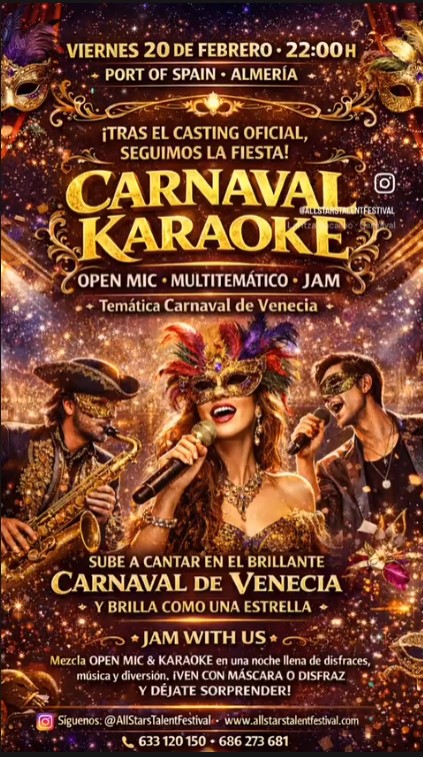 Entrada Libre 🔥🎭 CARNAVAL KARAOKE – JAM WITH US 🎤✨ After Casting Party 📅 Viernes 20 de febrero 🕙 Desde las 22:00 h 📍 Port Of […]
