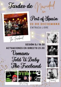 Entrada libre Port Of Spain 19:30 h - Sesión DJ 21:30 h Actuaciones en Directo Vomans Told U Baby The Freehand Una magnífica sesión para esta…