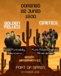 Find out more »10 € NS / GS Port of Spain hora de inicio 18:00. GOLDEN PELUCO + CINETICS + WATERPARTY GOLDEN PELUCO NACIÓ EN VALENCIA EN El AÑO…